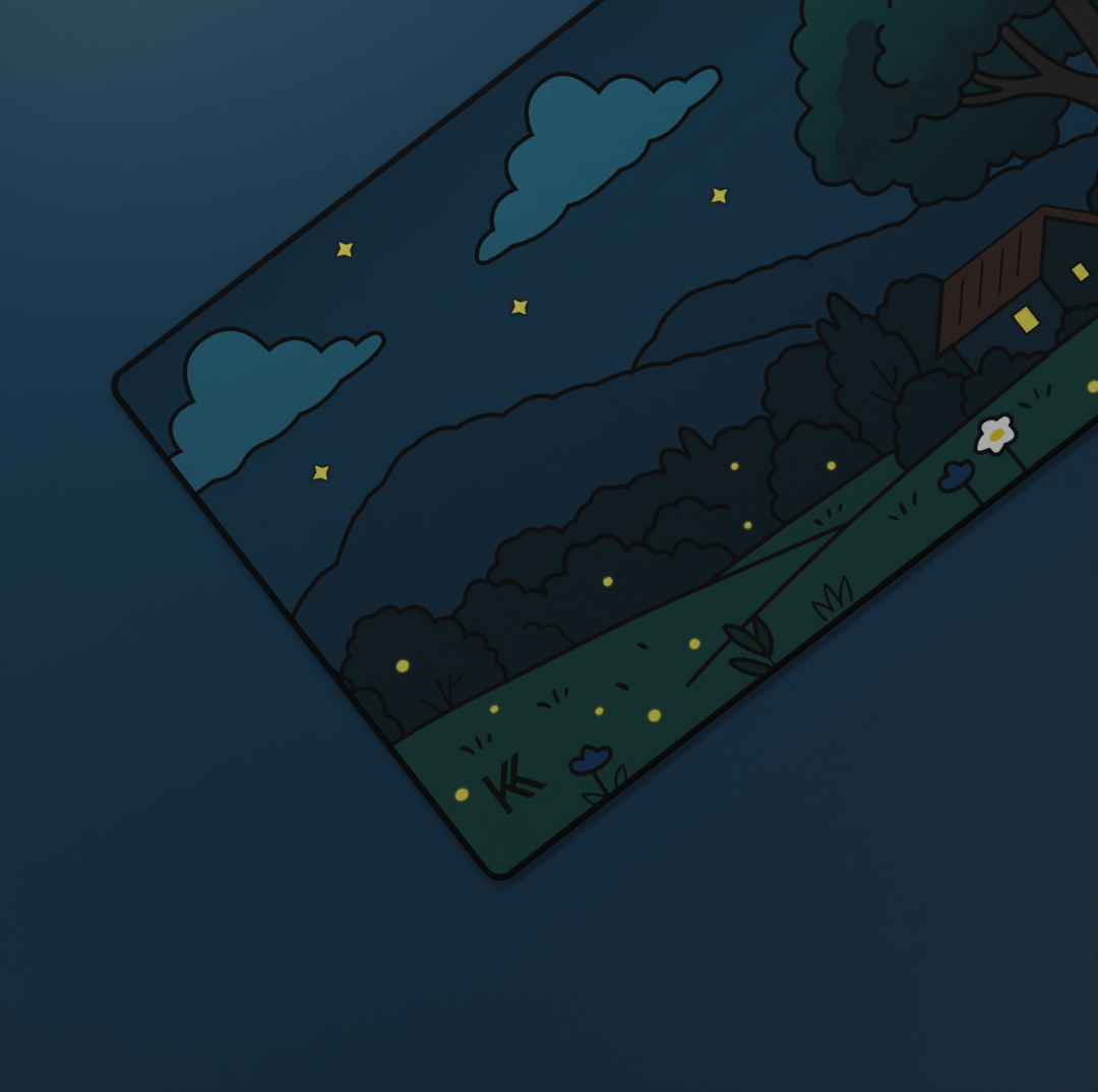 Perfect for gamers, creatives, and anyone who appreciates a calm, nature-inspired setup, the Midnight Meadow Deskmat brings the serenity of the outdoors right to your desk.
