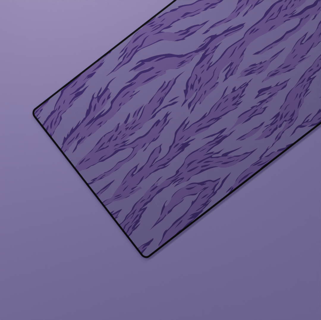 Add a pop of color and attitude to your desk with the Purple Tiger Camo Deskmat — a vibrant purple and black camouflage pattern inspired by tiger stripes. The energetic design creates a striking focal point for gaming, creative, or office setups.