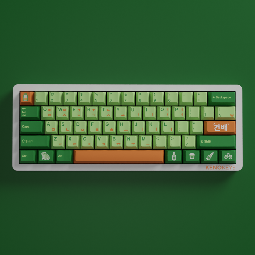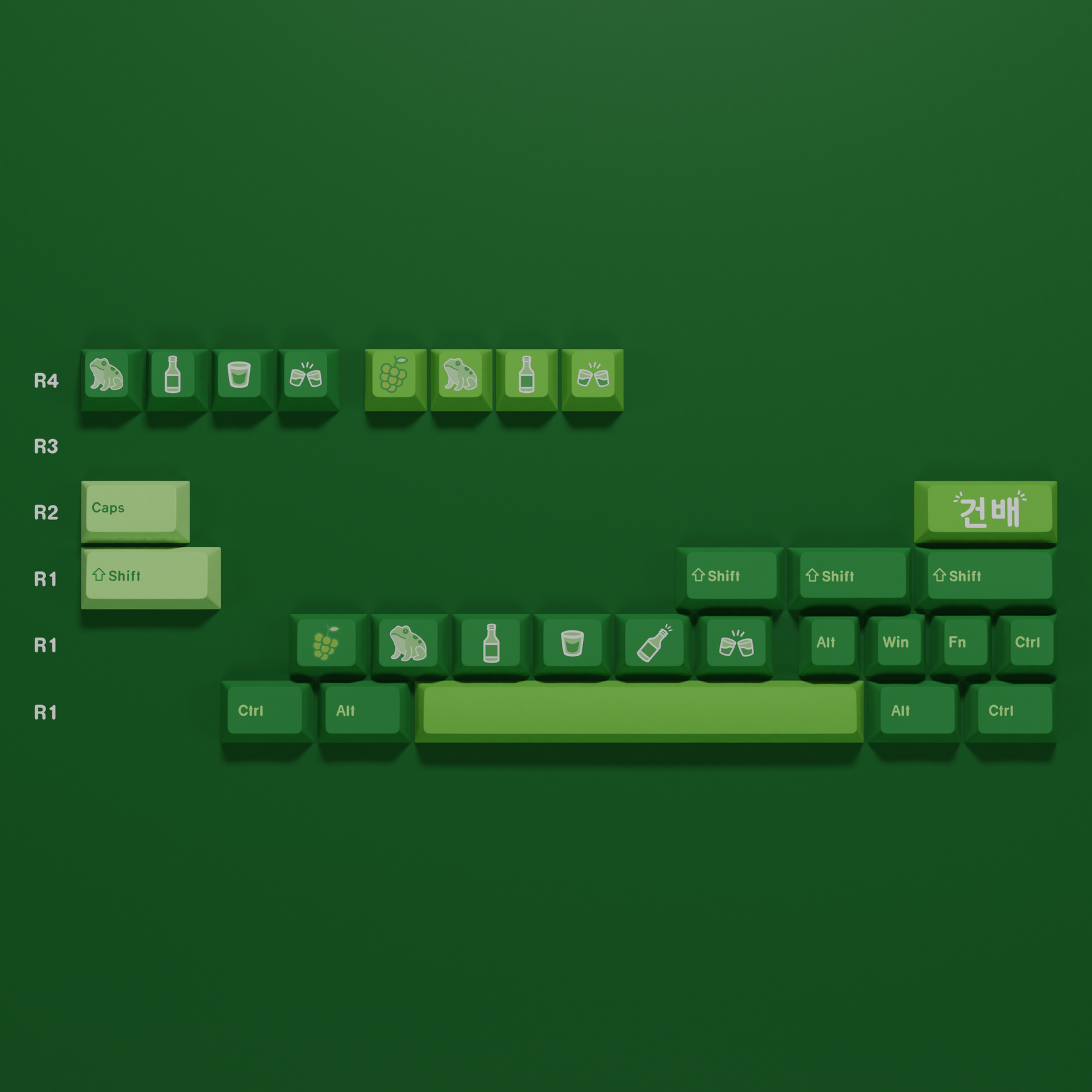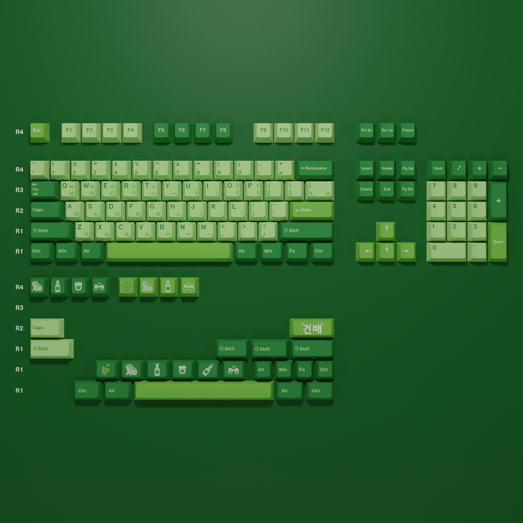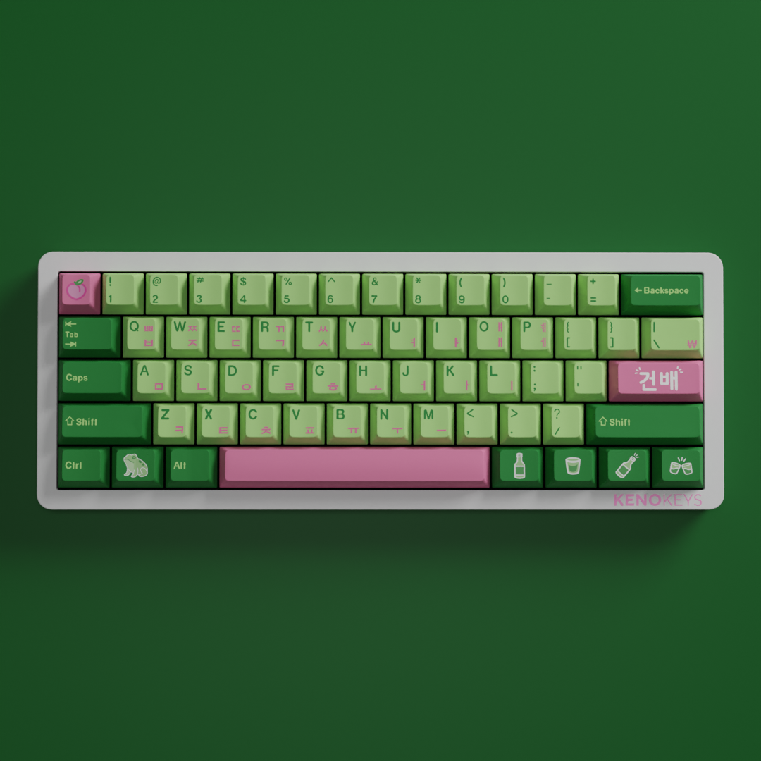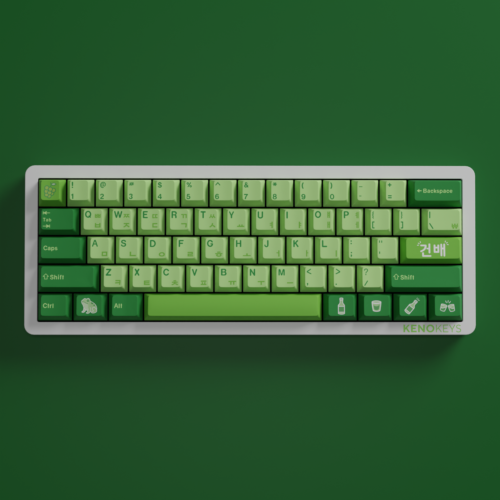 Add a refreshing pop of green to your setup with the Grape Soju Keycap Set — a cool, modern take on our popular Soju collection. Inspired by the crisp, fruity taste of green grape soju, this set features a mix of soft and vibrant green hues that bring a playful yet balanced aesthetic to your keyboard.