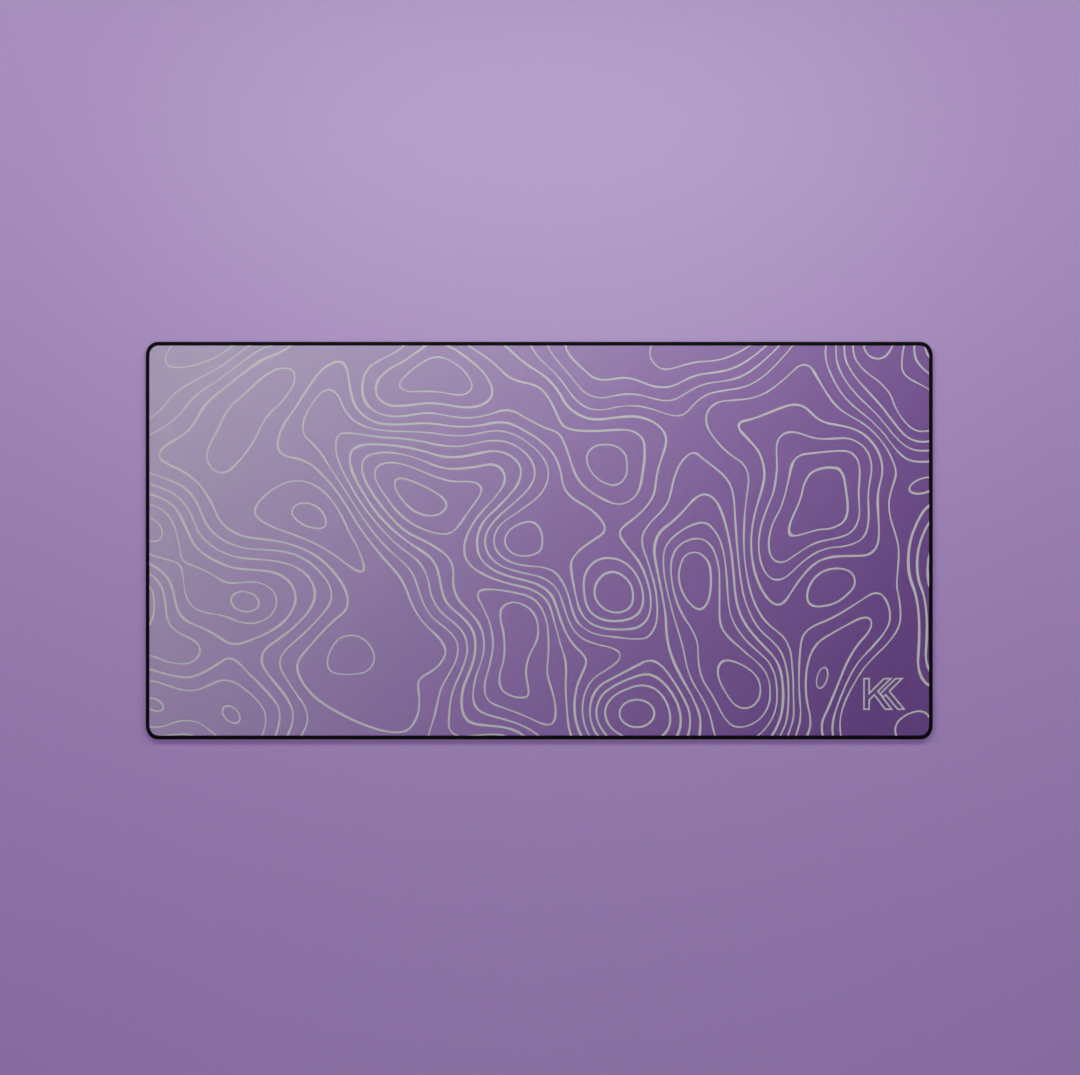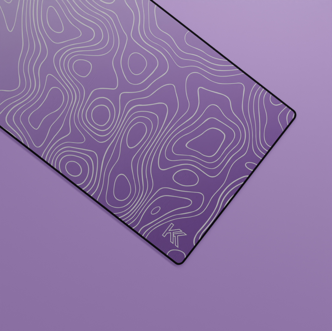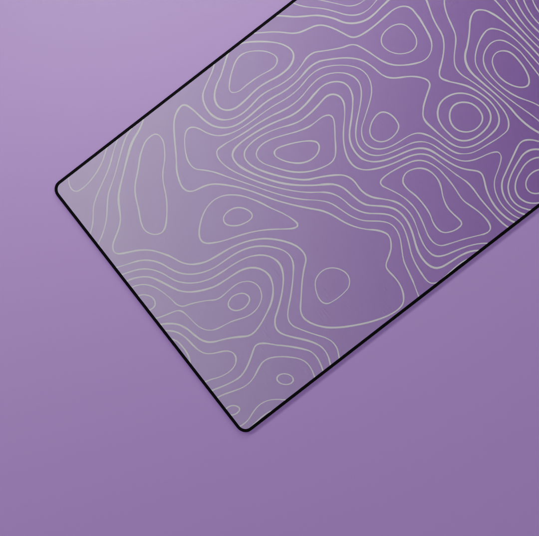 Transform your workspace with the Amethyst Topography Deskmat, designed with flowing contour lines inspired by natural elevation maps. The rich gradient of deep purple to soft lilac captures a calm yet creative energy — perfect for elevating any desk setup, whether minimalist, gaming, or design-focused.